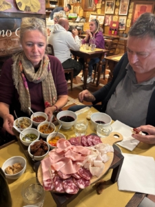 Die feine „Perlage“ ist typisch für den Lambrusco und macht ihn so bekömmlich. Bei DOC-Weinen entsteht sie durch eine natürliche Zweitgärung. Die Zugabe von künstlicher Kohlensäure ist strengstens verboten. Die natürliche Kohlensäure entsteht entweder durch eine zweite Gärung im Drucktank nach der Charmat-Methode oder nach der alten Methode in der Flasche (Metodo Ancestrale), was vor allem kleinere, handwerkliche Betriebe machen. Lambrusco kann trocken (secco), halbtrocken (semisecco), lieblich (amabilie) oder süß (dolce) sein. Mit 10 bis 11 Prozent Alkoholgehalt ist er ein leichter Rotwein, der jung und am besten kalt in einem Weißweinglas serviert wird. Allerdings haben wir Lambrusco auch schon aus einer Porzellanschale getrunken, was hervorragend geschmeckt hat.