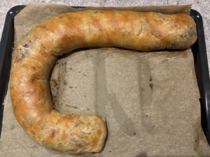 Zubereitung: Strudelteig mit Butter beträufeln, zuerst Butterbrösel, dann Rotkraut über zwei Drittel verteilen, Maroni drüberstreuen. Teig seitlich einschlagen, aufrollen, mit Naht nach unten aufs Backblech legen, mit Butter oder Eigelb bestreichen und im vorgeheizten Backofen bei 190 °C für circa 35 Minuten backen. Tipp: Perfekt zu Wild oder mit Sauerrahm-Dip.